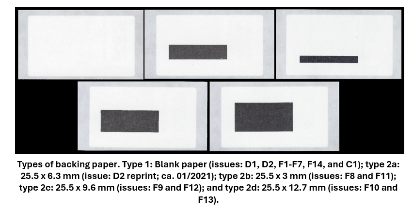En er zijn meer verschillende balkvormen. Een Amerikaanse verzamelaar zond mij afbeeldingen van de tot nu toe gevonden vormen toe. Het bljkt dat ze zijn bedoeld om de sensor in de automaten te activeren voor het afsnijden van de zegels uit de velletjes van 10 stuks in de automaat.