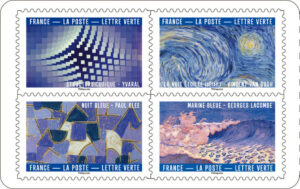 Het maakt de onderwerpen niet minder bijzonder. Zo kiest men geregeld, zoals nu, een onderwerp uit de schilderkunst. En dit keer met een origineel uitgangspunt: blauw in de kunst. Ook nu weer in een boekje van twaalf zegels. Het is op 5 januari van dit jaar verschenen. Het blauw aan de hemel, of het blauw van de zee. Deze kleur heerst in de geschiedenis van de schilderkunst en levert schilders inspiratie. De kleur blauw is ook symbool van de vrede, van puurheid en oneindigheid.