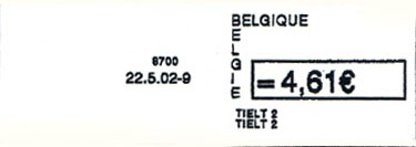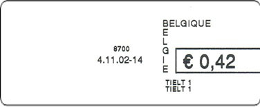 Sinds mei 2002 zijn in België loketfrankeerstroken in gebruik, die met allerlei wijzigingen door de jaren heen nog steeds uit de frankeermachines komen. Op de eerste strook van 22 mei 2002 stond oorspronkelijk “=” vóór de waarde en “€” achter de waarde.